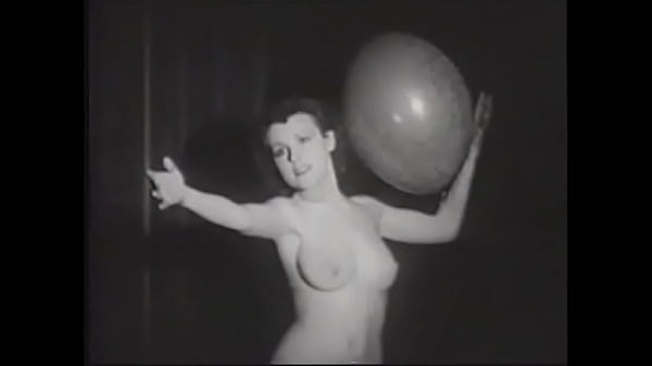 You are watching Erotic retro model with a beautiful figure plays with balloons for the crowd on stage Sex Movie.